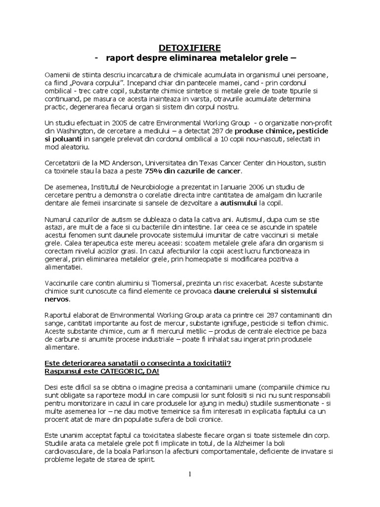 Detoxifiere Raport Despre Eliminarea Metalelor Grele