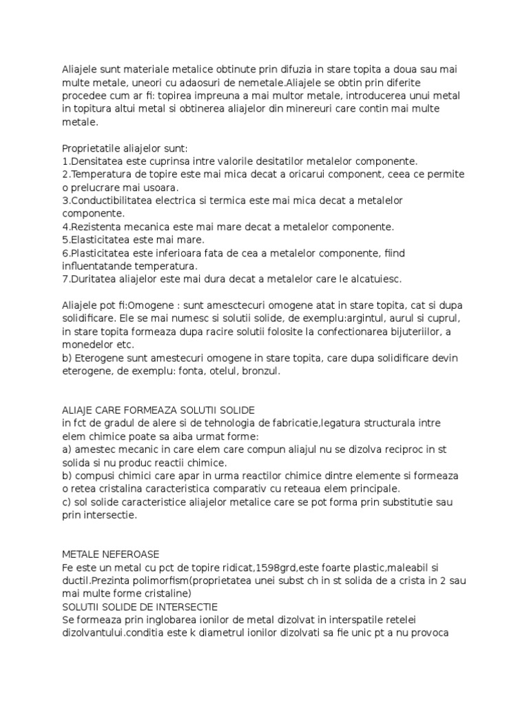 Aliajele Sunt Materiale Metalice Obtinute Prin Difuzia In Stare Topita A Doua Sau Mai Multe Metal