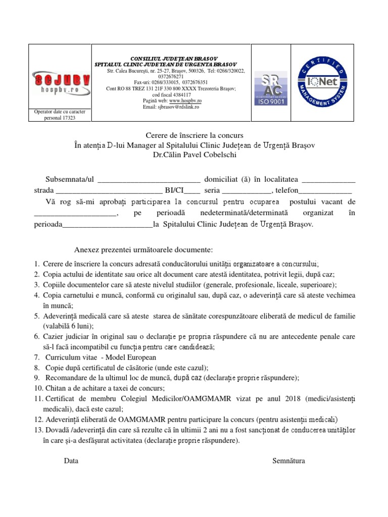 Cerere De Inscriere Concurs Spitalul De Pneumoftiziologie Sibiu