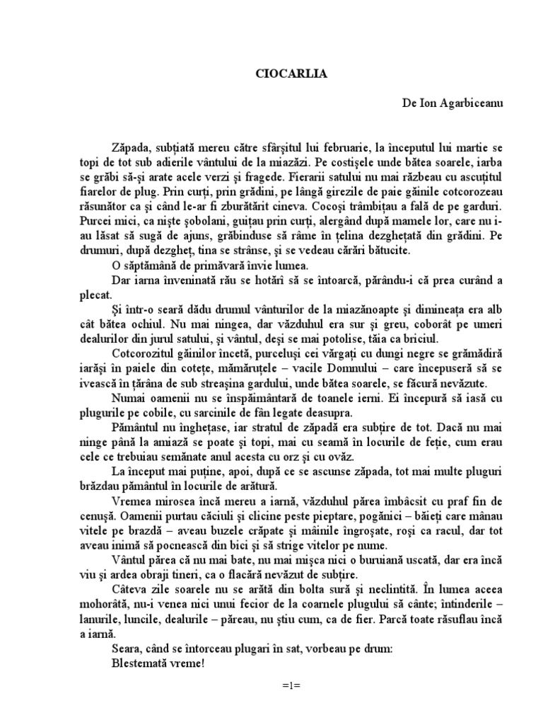 Uurrrggeeennnttt Povestirea Ciocarlia De Ion Agarbiceanu De Aici Va Rooogggg Sau Coronița Brainly Ro