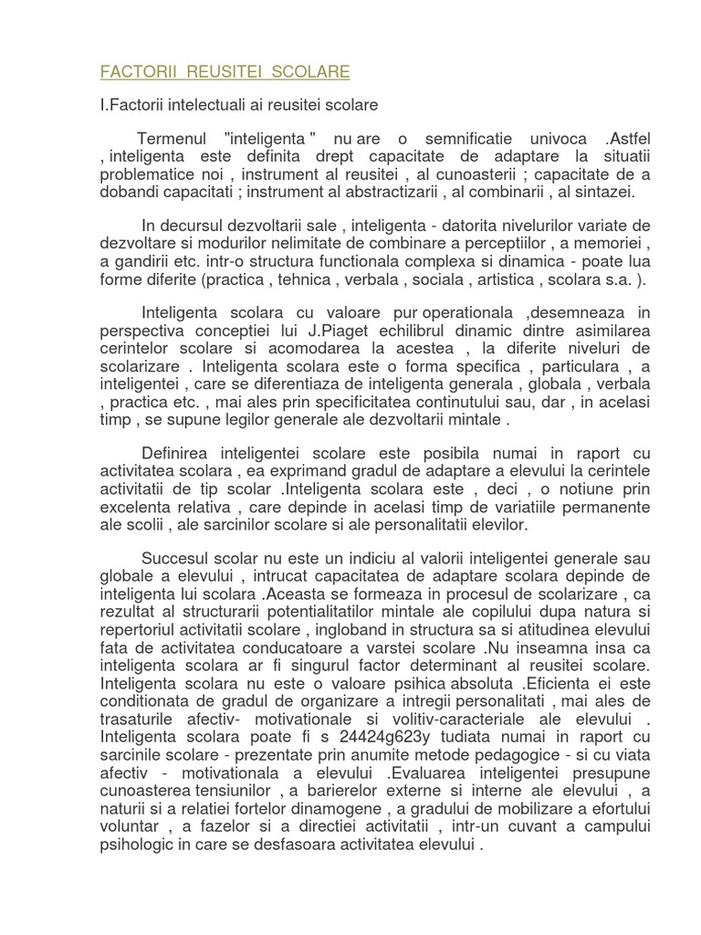 269200953 Factorii Reusitei Scolare In Invatamantul Primar Pdf