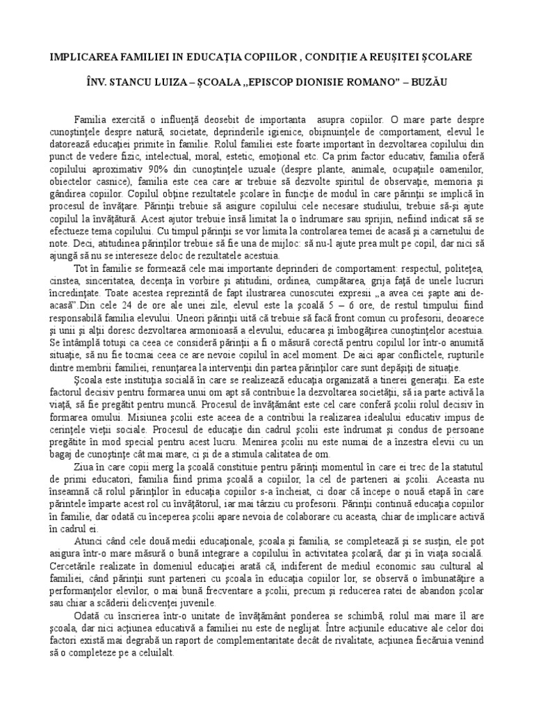 Colaborarea Scoala Familie Conditia Reusitei Scolare