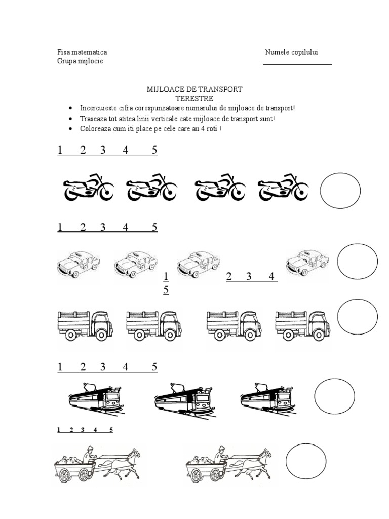 Fise De Lucru Cu Mijloace De Transport Grupa Mijlocie Ds Cunoasterea Kindergarden Activities Preschool Activities Numbers Preschool