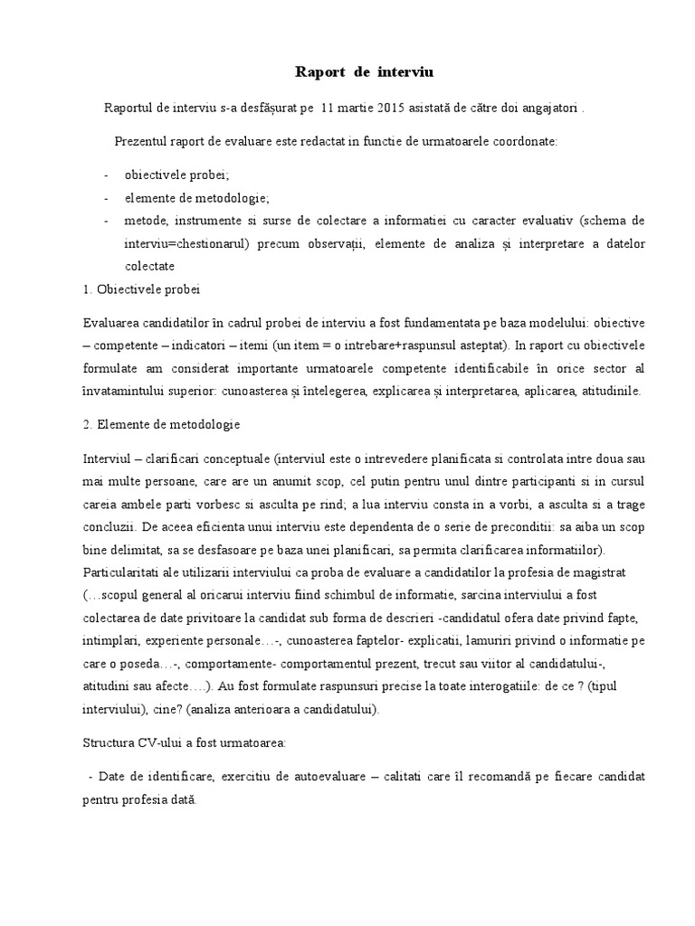 Raport De Interviu
