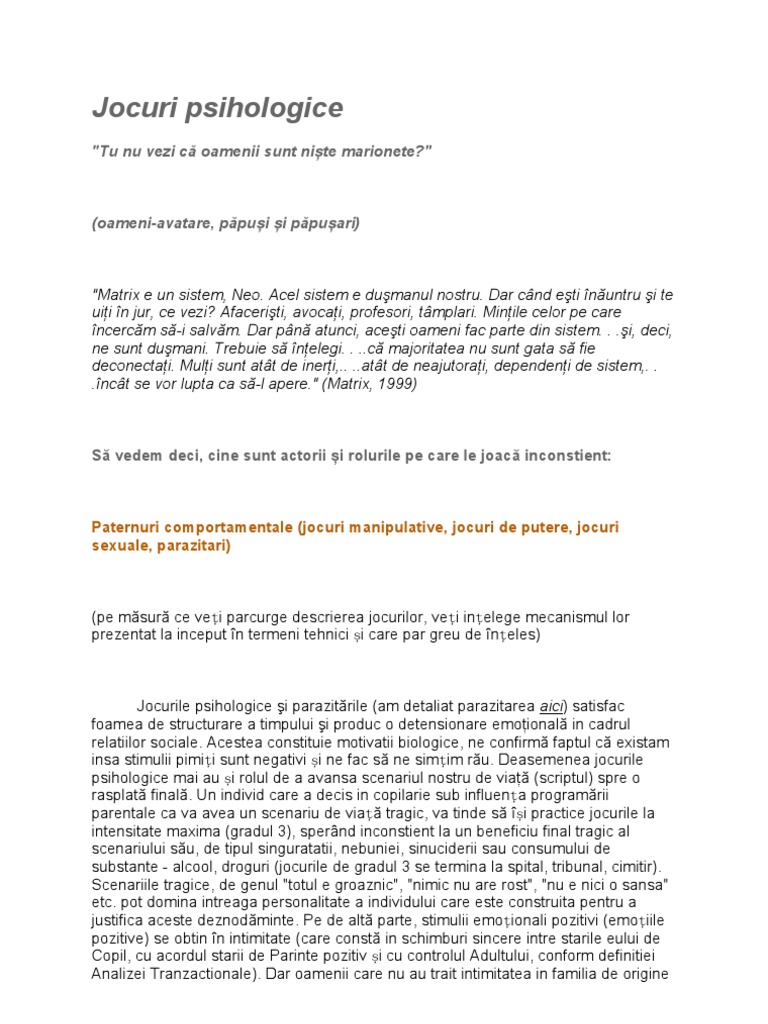 Jocuri Psihologice Jocuri De Putere Jocuri Sexuale Jocuri Manipulative
