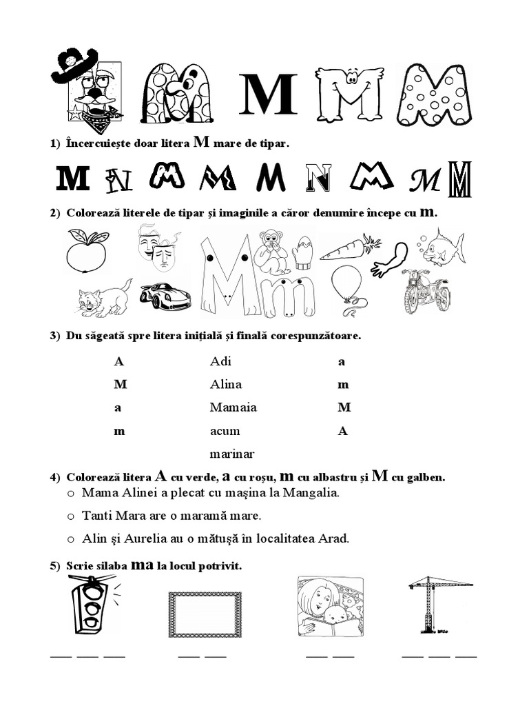 Fisa De Lucru Litera M Activitati Didactice