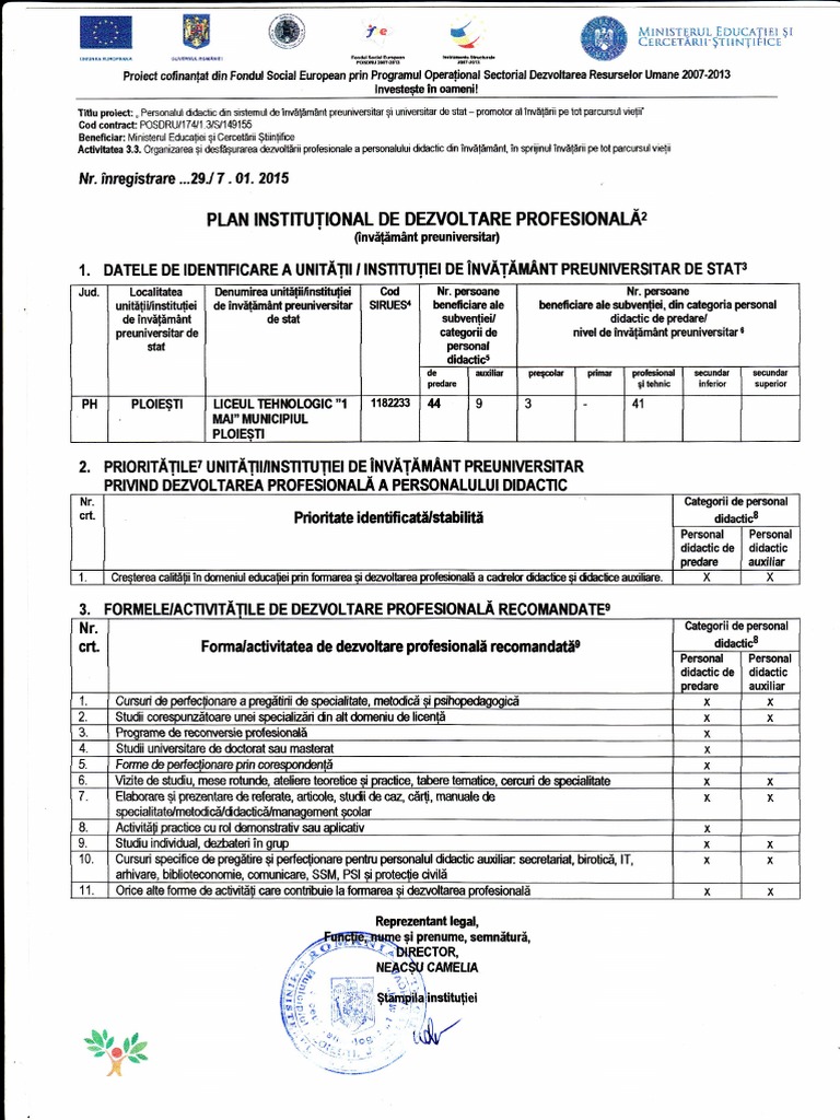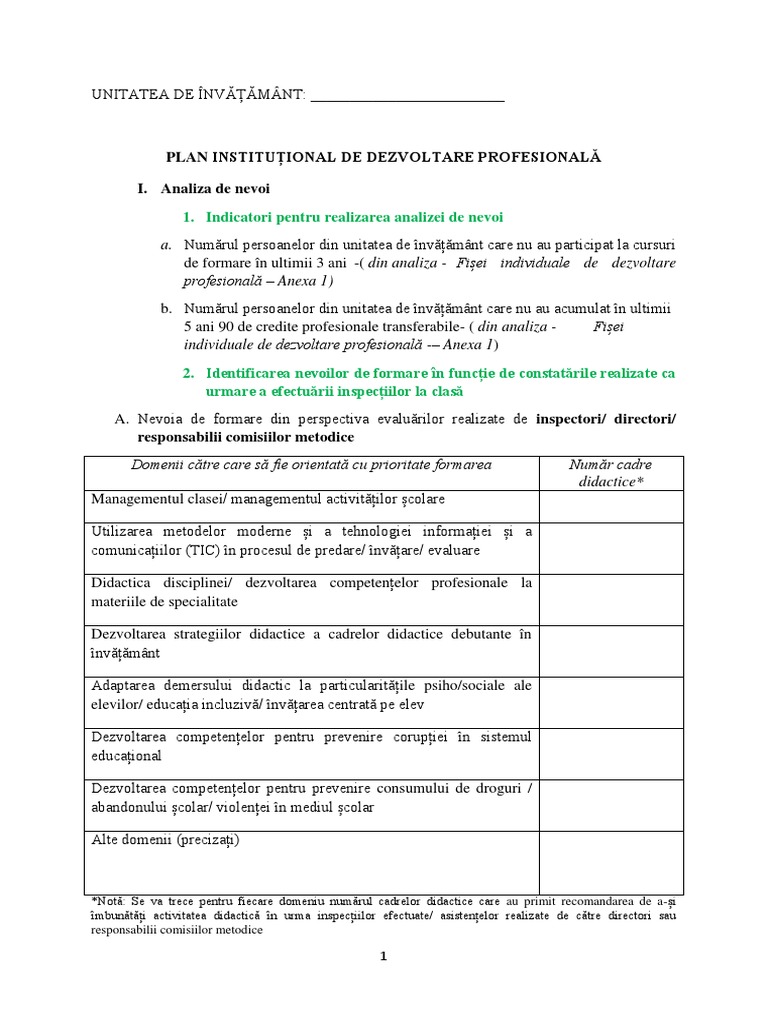 Plan Institutional De Dezvoltare Profesionala Model Completat