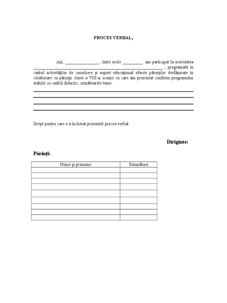 Model Proces Verbal Consiliere Parinti