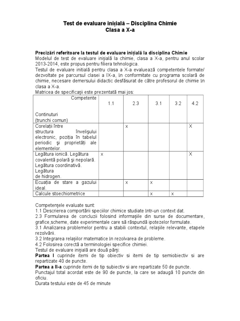 Model Test Evaluare Initiala Chimie Clasa Aviia Anca2009 28 08 2018 Sheet Music Person