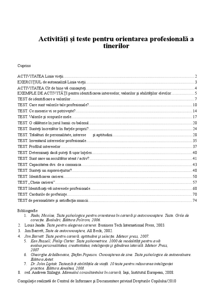 Activităţi Si Teste Pentru Orientarea Profesională A Tinerilor