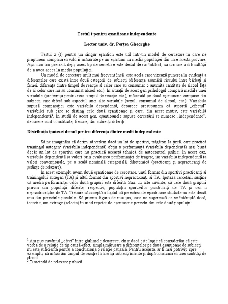 Curs 4 Testul T Pentru Două Eșantioane Independente Ubb Studocu