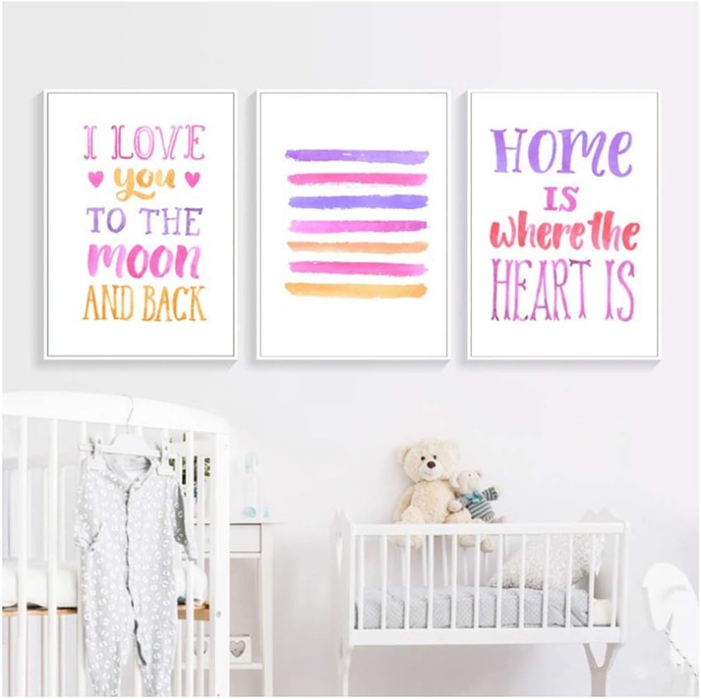 Amazon Com Xiangpeifbh Print Canvas Painting Watercolor Elements Phrase I Love You To The Moon And Back Wall Art Pictures Kids Room Frame Decor 30x40 Cm X3 11 8 X 15 7 With Frame Posters